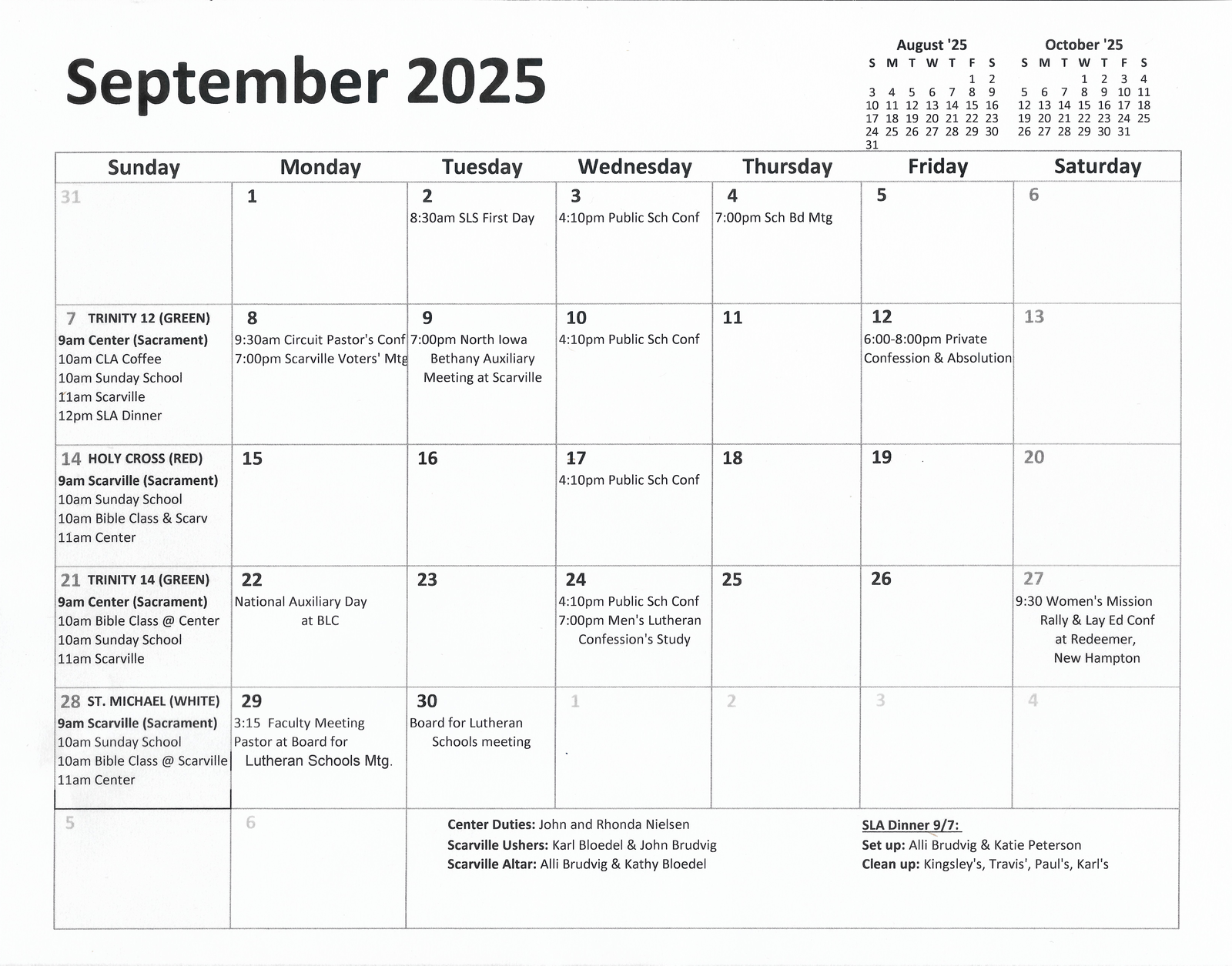 Scarville and Center Lutheran Church September 2025 Calendar